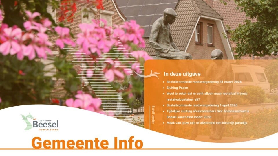Kijk op de website www.beesel.nl voor verdere informatie hoe u de vergadering kunt volgen.