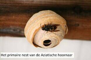 Sinds een paar jaar duikt in Nederland ook de Aziatische hoornaar op. Deze is kleiner dan de Europese hoornaar en vormt een bedreiging voor honingbijen, vlinders, hommels en solitaire bijen. De nesten zijn te vinden op verschillende plekken: soms hoog in bomen of gebouwen, maar ook laag bij de grond – bijvoorbeeld in hagen, struiken of schuurtjes.