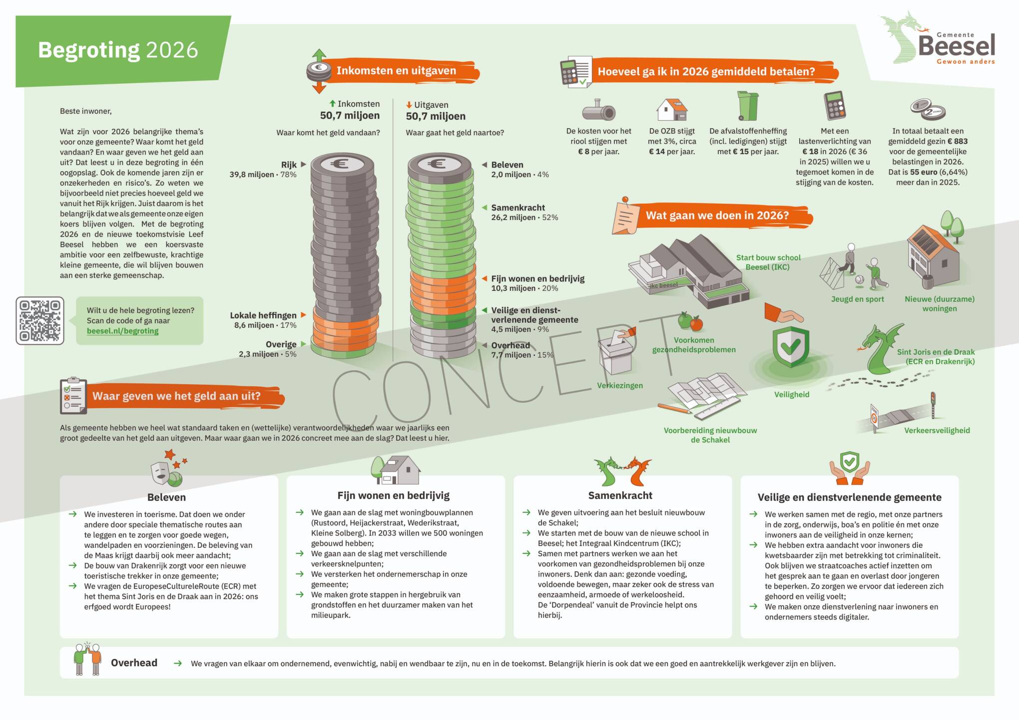 De begroting in één oogopslag is nog in concept, omdat de gemeenteraad hierover nog moet besluiten tijdens de algemene beschouwingen op 6 november.