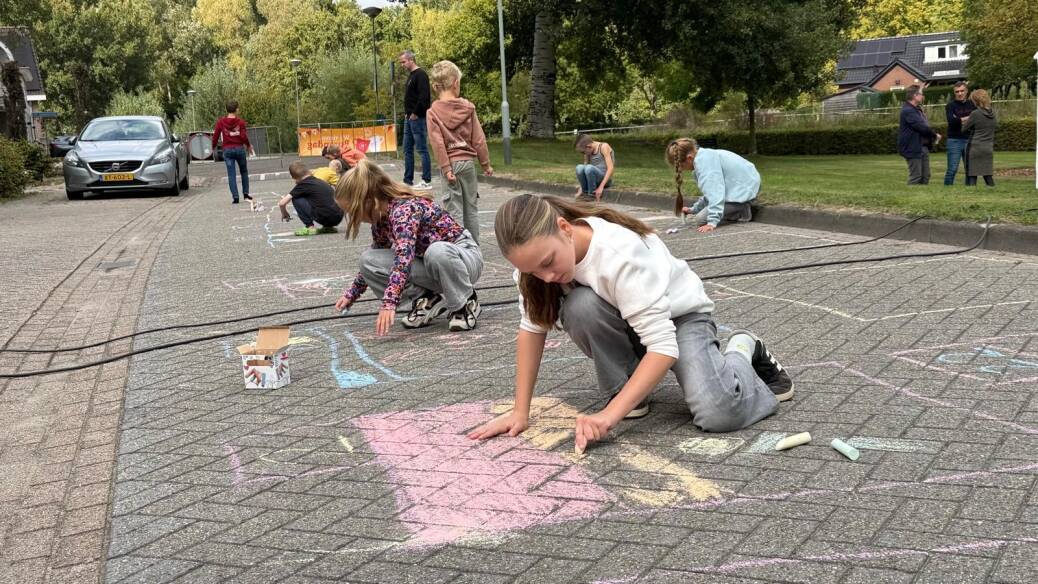 Creatieve geesten konden hun ei kwijt bij de straattekenwedstrijd. De straat veranderde in een bont kunstwerk en de blije gezichten bij de prijsuitreiking spraken boekdelen.