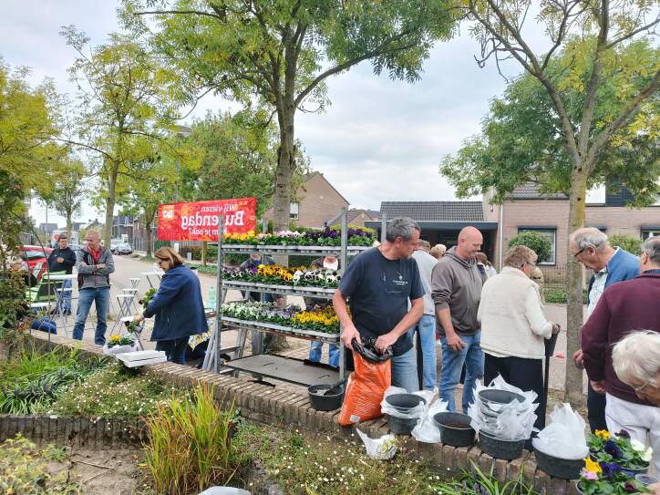 “De bloemetjes buiten zetten”, dat was het stralende thema van de allereerste officiële Burendag voor de Glazuurstraat en Sintelstraat. De koffie met vlaai stond klaar, en imker Guus Killaars bracht een zoete buzz in de middag met een bijzonder interessante lezing. Daarna was het tijd om de handen uit de mouwen te steken en samen de straatjes tot bloei te laten komen.