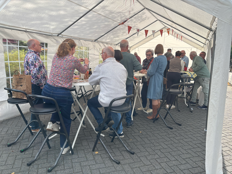 De feestvreugde kreeg extra glans toen de burgemeester, wethouders en Synthese in de middag langskwamen om persoonlijk kennis te maken met de bewoners en de gezellige sfeer te proeven. Als kers op de taart werden de prijzen van de bake-off later op de middag uitgereikt door de burgemeester, samen met leden van de organisatie, wat het moment extra feestelijk maakte.