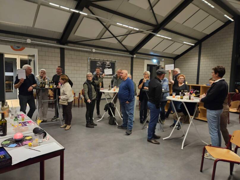 Vanaf 14.00 uur druppelden de buurtgenoten binnen. De vlaai – twee stuks, geschonken door het gemeentebestuur – viel goed in de smaak, net als de koffie en thee die rijkelijk werden geschonken.