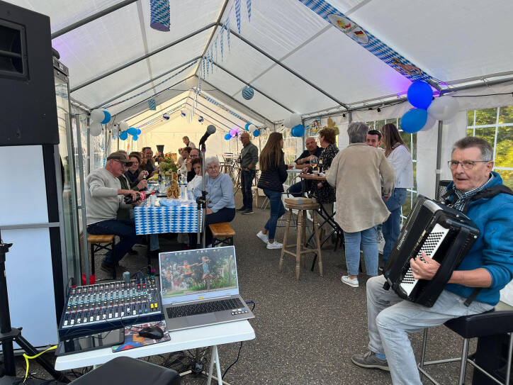 Het avondprogramma stond in het teken van het Oktoberfest. Iedereen kon smullen van Duitse worst, zuurkool, stokbrood en frisse salades. Na het diner zette het optreden van Willy de tent volledig op zijn kop. De ‘Schwung’ zat er goed in, het volume ging steeds harder en iedereen zong mee, danste en borrelde nog na.