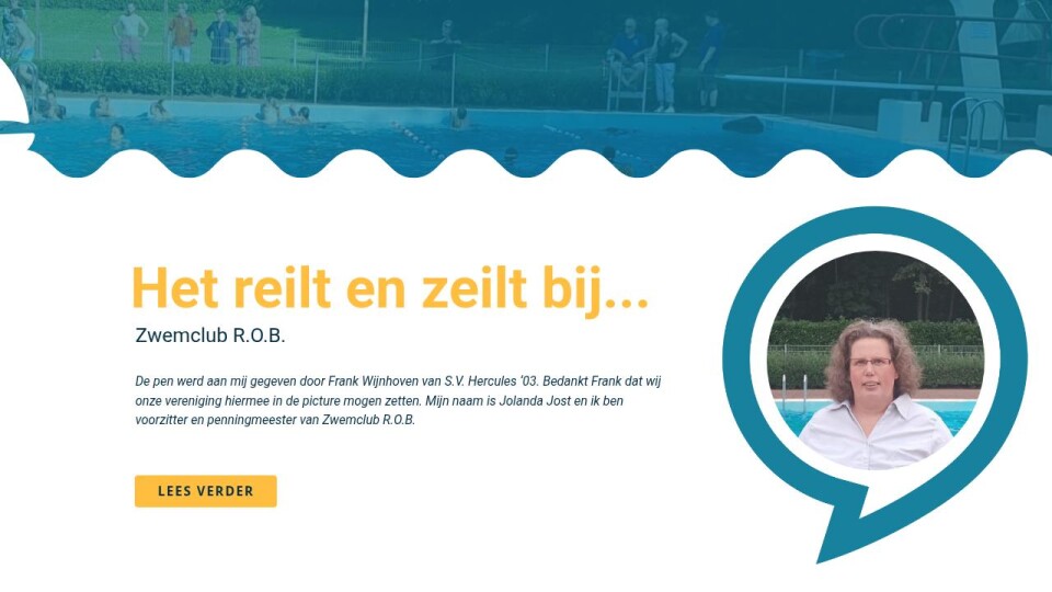 Ongeveer 15 jaar geleden was ik werkzaam bij Landal De Lommerbergen. Van daaruit wist ik dat Zwemclub R.O.B. daar de zwemlessen verzorgde. Voor mij was het een logische keuze om mijn kinderen daar dan ook op zwemles te laten gaan. Terwijl mijn zoon nog bezig was met het Zwem-ABC, werd al snel duidelijk dat hij graag wilde blijven zwemmen. De keuze viel op de wedstrijdploeg.
