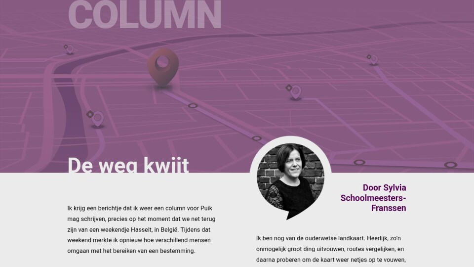 Ik krijg een berichtje dat ik weer een column voor Puik mag schrijven, precies op het moment dat we net terug zijn van een weekendje Hasselt, in België. Tijdens dat weekend merkte ik opnieuw hoe verschillend mensen omgaan met het bereiken van een bestemming.