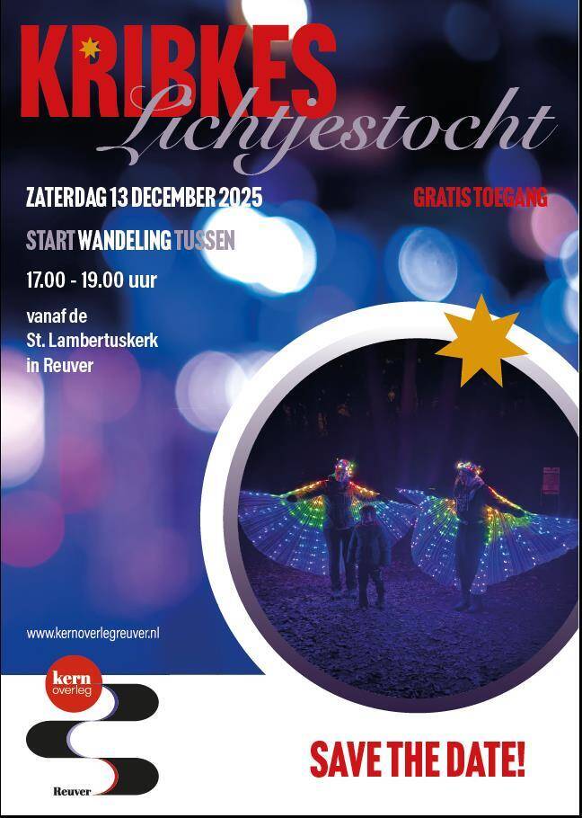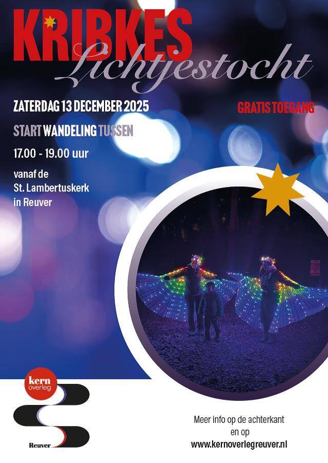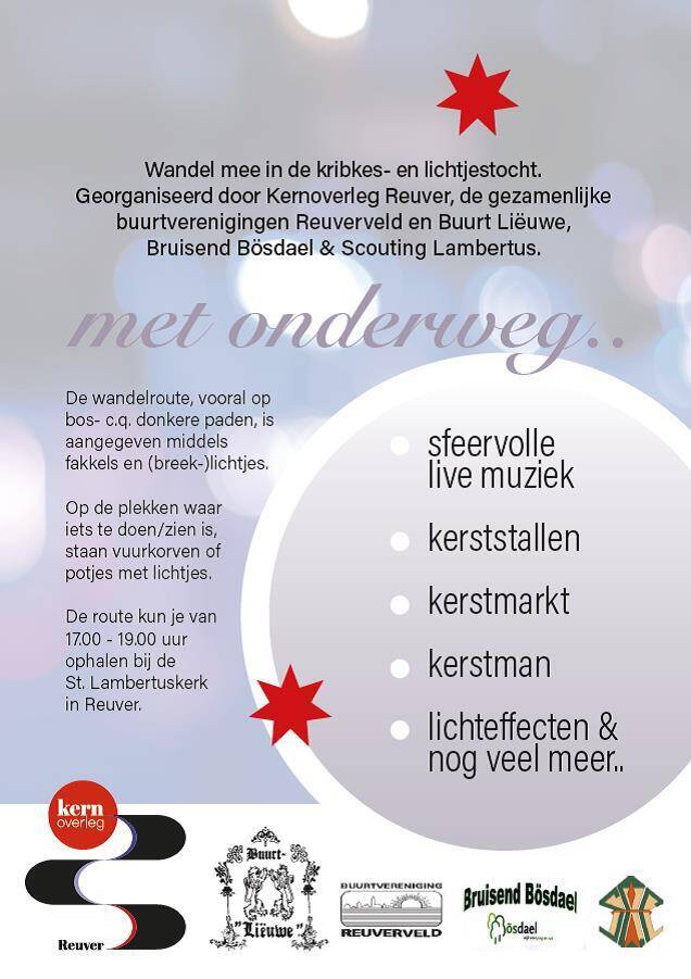 De gezamenlijke buurten en het Kernoverleg Reuver organiseren ook dit jaar weer de Kribkes-/Lichtjestocht.