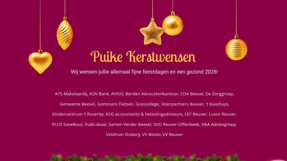 Wij wensen jullie allemaal fijne feestdagen en een gezond 2026!