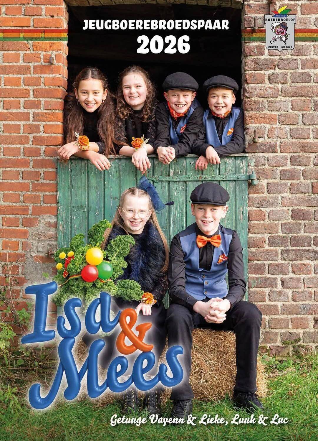 Na spetterende optredens van de winnaars van de blageliedjesmiddag en de minidansgarde kwamen onder luid gejuich Isa Hillekens en Mees Verstappen als jeugboerebroedspaar onder de hoed uit. Samen met hun getuiges Vayenn Smits, Lieke Nijbelen, Luuk Gommans en Luc Zegers zullen zij samen met Windjbuujelsjeug Prins Tjen 1 en de nog uit te komen hoogheid van Jong Nederland de jeugdvastelaovend voorgaan.