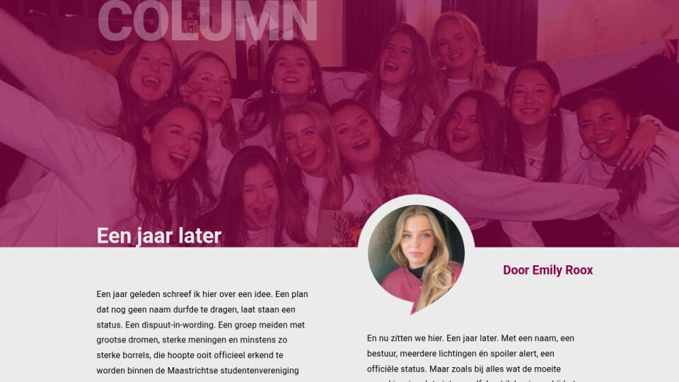 Een jaar geleden schreef ik hier over een idee. Een plan dat nog geen naam durfde te dragen, laat staan een status. Een dispuut-in-wording. Een groep meiden met grootse dromen, sterke meningen en minstens zo sterke borrels, die hoopte ooit officieel erkend te worden binnen de Maastrichtse studentenvereniging Circumflex. Vorig jaar vertelde ik jullie over dat begin: het schetsen van plannen, het schrijven van statuten en het hopen op een toekomst waarin wij een écht dispuut zouden zijn.