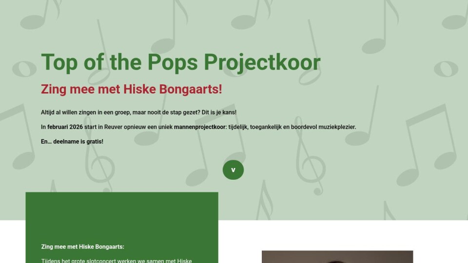 We sluiten af met een knallend “Top of the Pops” concert op zaterdag 30 mei 2026. Een avond vol muziek, energie, live-beleving met de projectkoorleden én Hiske Bongaarts als stralend middelpunt.