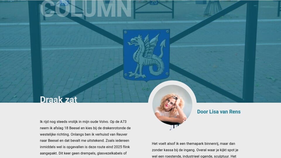 Het beleid lijkt meer op citymarketing dan op cultuur. Het zou mij al niets meer verbazen als deze “Efteling-fixatie” binnenkort zijn absolute hoogtepunt bereikt tijdens mijn hond- uitlaatrondje. Dat ik dan een volgescheten zakje in een Depo-Dog – ik bedoel “Depo Dragon” – duw en dat er dan een galmende stem klinkt met: “Draakje schrok... Dank u wel!”. Zelfs de Efteling begrijpt dat je Pardoes niet op iedere straatlantaarn, putdeksel of prullenbak hoeft af te beelden om sfeer te creëren. Beesel staat bekend om Sint Joris en de draak. Iets waar Beesel trots op is en Reuver wellicht toch ietwat jaloers. De gemeente investeert in herkenbaarheid, waarin de draak uiteraard tot uiting moet komen. Het is een interessant fenomeen. Wat ooit begon als één krachtig symbool, dreigt door herhaling zijn kracht te verliezen en verandert zo langzaam maar zeker in een cliché. Een draak is mythisch en bijzonder. Zodra hij op elke straathoek opduikt, wordt hij haast alledaags. Als er ook maar iets funest is voor een mythisch wezen, dan is het voorspelbaarheid. Dus mijn vraag is: hoe houden we dit symbool bijzonder? Hoe zorgen we dat kunst, kunst blijft en niet verwordt tot serieproductie? Laat ik duidelijk zijn: Beesel mag trots zijn op deze identiteit.